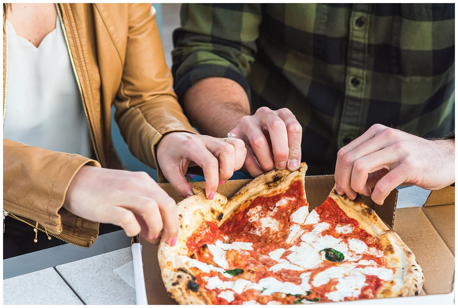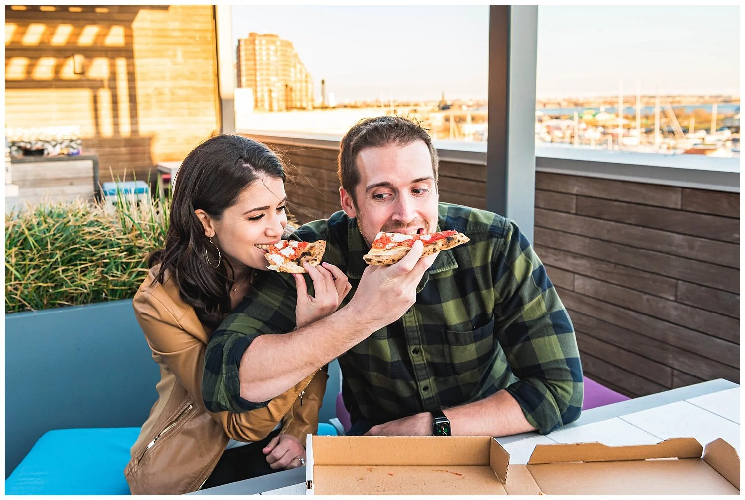 Kristen & Pat love living in Jersey City almost as much as they love their pup, Henry, so when it came time for their engagement session, they knew both had to be incorporated in some way! And because they're tying the knot at Porta Asbury Park in November, sharing a margherita pizza was an absolute must. We had so much fun taking in the views on a sunny evening at Liberty State Park before watching the sun set on the Hudson and enjoying a rooftop pizza picnic. The sweet duo even sent me home with pie!